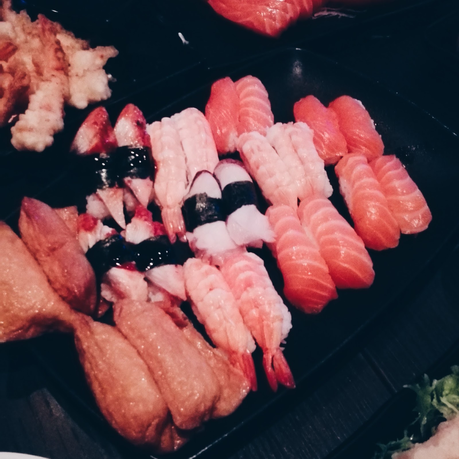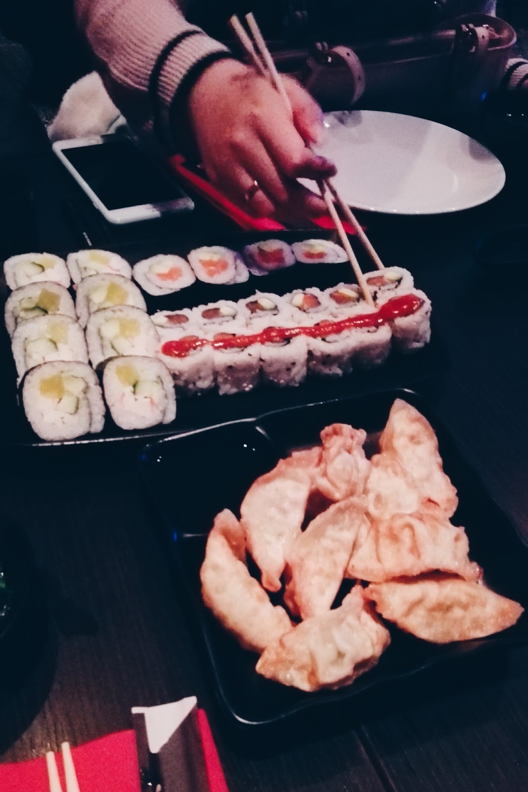 On Saturday my boyfriend and I headed down to Edgeware, London to have a catch up with some friends over sushi – and what better place to have it than at Sushi Mania 😀 This is a sushi buffet restaurant, and the food here is so good! We ordered a lot of sushi, salmon sashimi, prawn tempura, fried tofu, dumplings, chicken and beef skewers, and seaweed salad. They also serve hot food like ramen. I’ve been to Sushi Mania before in Brighton and in Reading, which were also very good.
