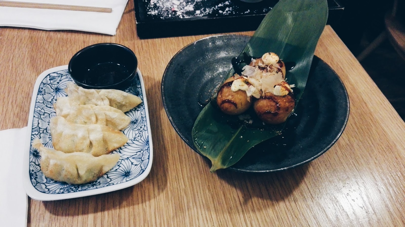 Mandu/dumplings with soy sauce. It was nicely cooked and slightly crunchy on the outside.