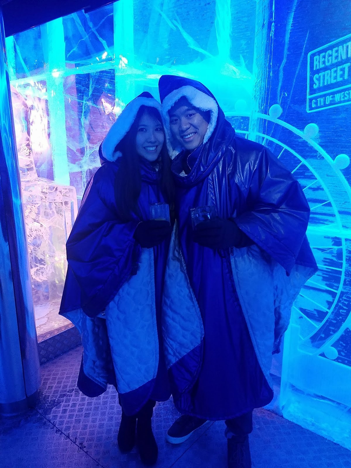 Here is one place I’ve been longing to visit – the London Ice Bar! 😀 So this year we decided to give it a go during the Christmas season! It’s the only bar in the UK that is entirely made of ice and is kept at -5°C all year round, and apparently their ice is harvested from Northern Sweden. You have to book tickets before you go in as there are always lots of people visiting. Luckily the queue wasn’t a long wait, and once inside, we were given a cloak and gloves to wear, and we also got a free drink!