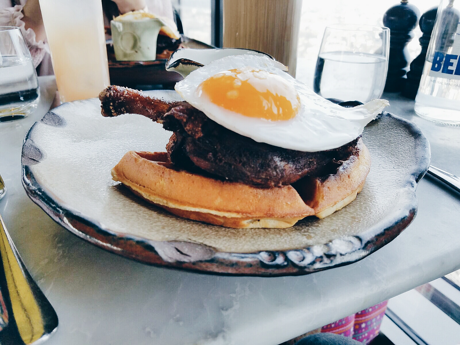 We had to try their speciality, which is obvious in the name – duck and waffle! This was surprisingly really good; the crispy duck was well cooked and tasty, and it went really well with the waffle when we added the syrup to it. It also came with a sunny-side up egg to top it off 🙂