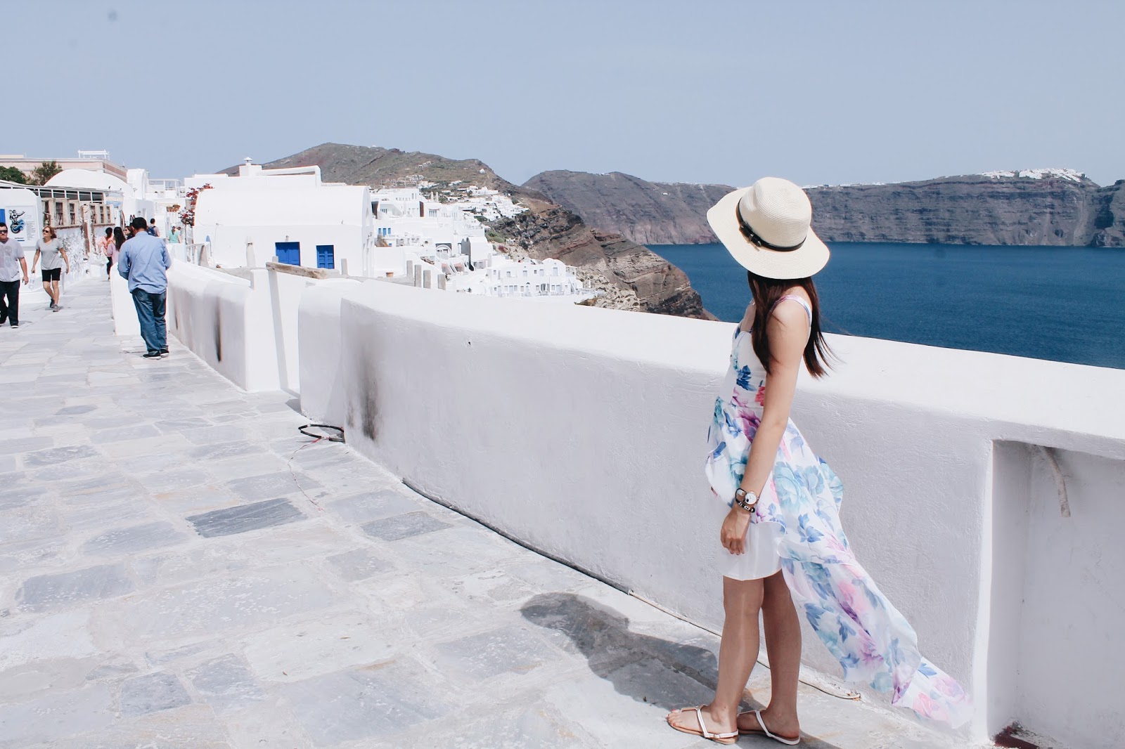 The pink and blue floral pattern on this dress goes really well with the scenery in Santorini with its blue and white buildings, and it can be worn for any summery occasion! If I were to describe my style, I would say I tend to lean towards more simple and clean looking dresses, and this dress caught my eye straight away as it is not over-patterned, it’s WHITE (I love white), has a touch of femininity to it, and I love the short-front-long-back kinda dresses these days!